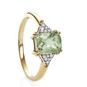 MP5816 9ct YG Green Amethyst checkerboard & Diamond 0.06ct GH/I2 Ring