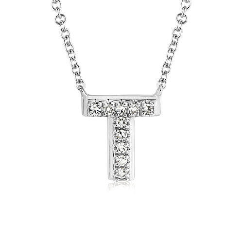 9ct Yellow Gold Diamond Initial T. Set with 0.06cts of Harmony Created Diamonds.