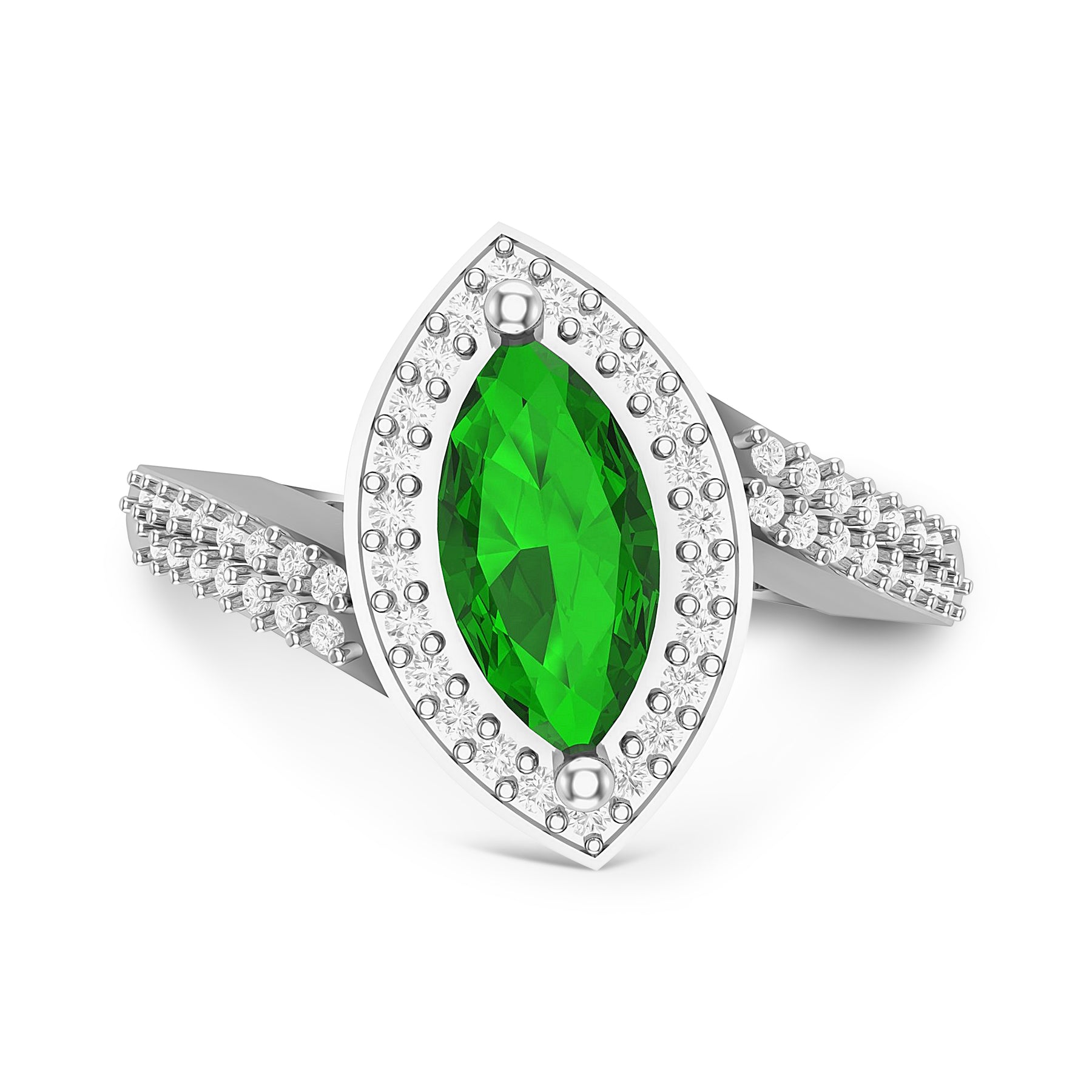 MP5974 9ct WG green tourmaline (9x4.5mm) & diamond 0.20ct ring
