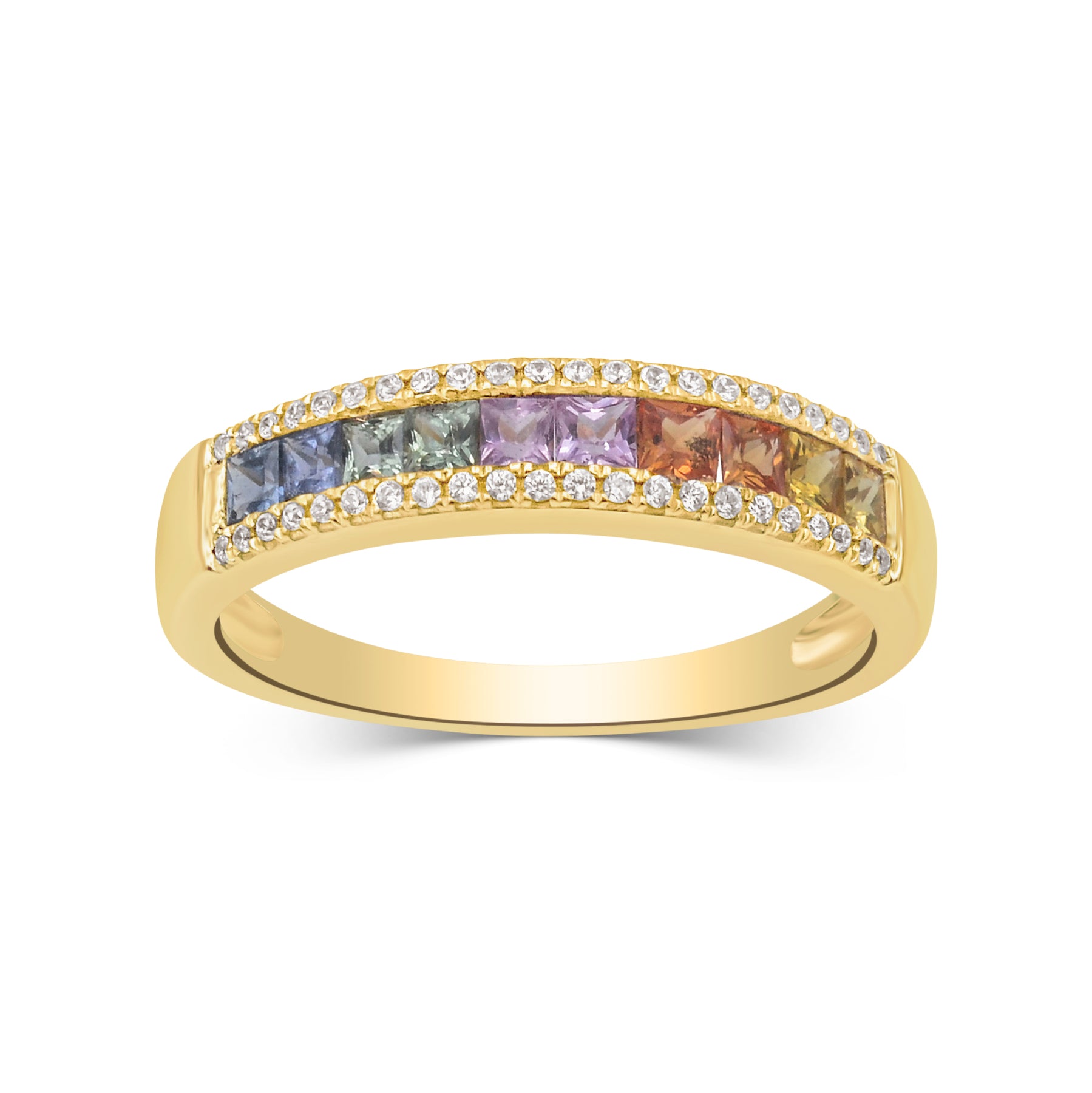 MP5987 9ct YG multi sapphires and 0.09ct diamond ring (HI/P1-2)