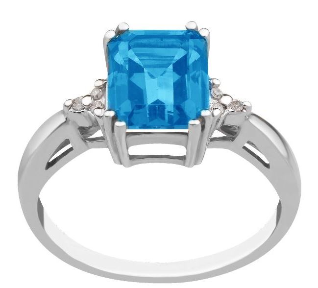 Sterling Silver Blue Topaz and Diamonds Ring
