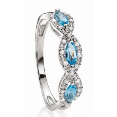 MP5542 9ct WG Blue Topaz - 0.52ct Total (Marquise 5x2.5mm) & Diamond TDW 0.10ct Ring