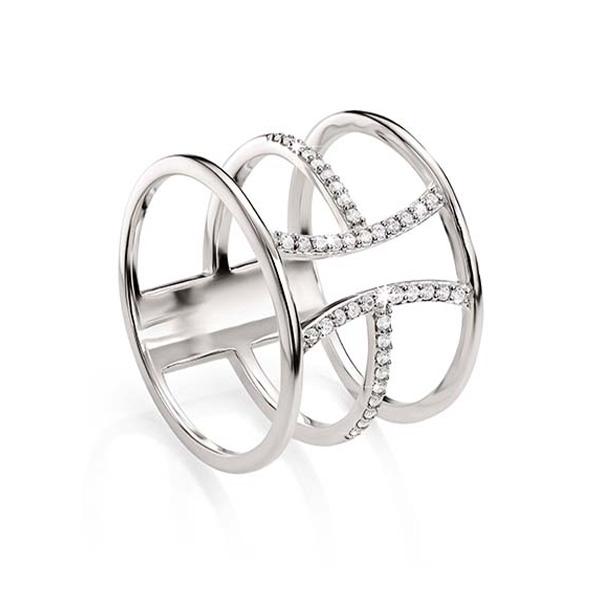 Sterling Silver Wide T Style Cubic Zirconia Ring