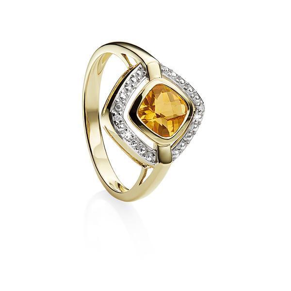 MP5636 9ct YG 6mm cushion citrine & diamond ring